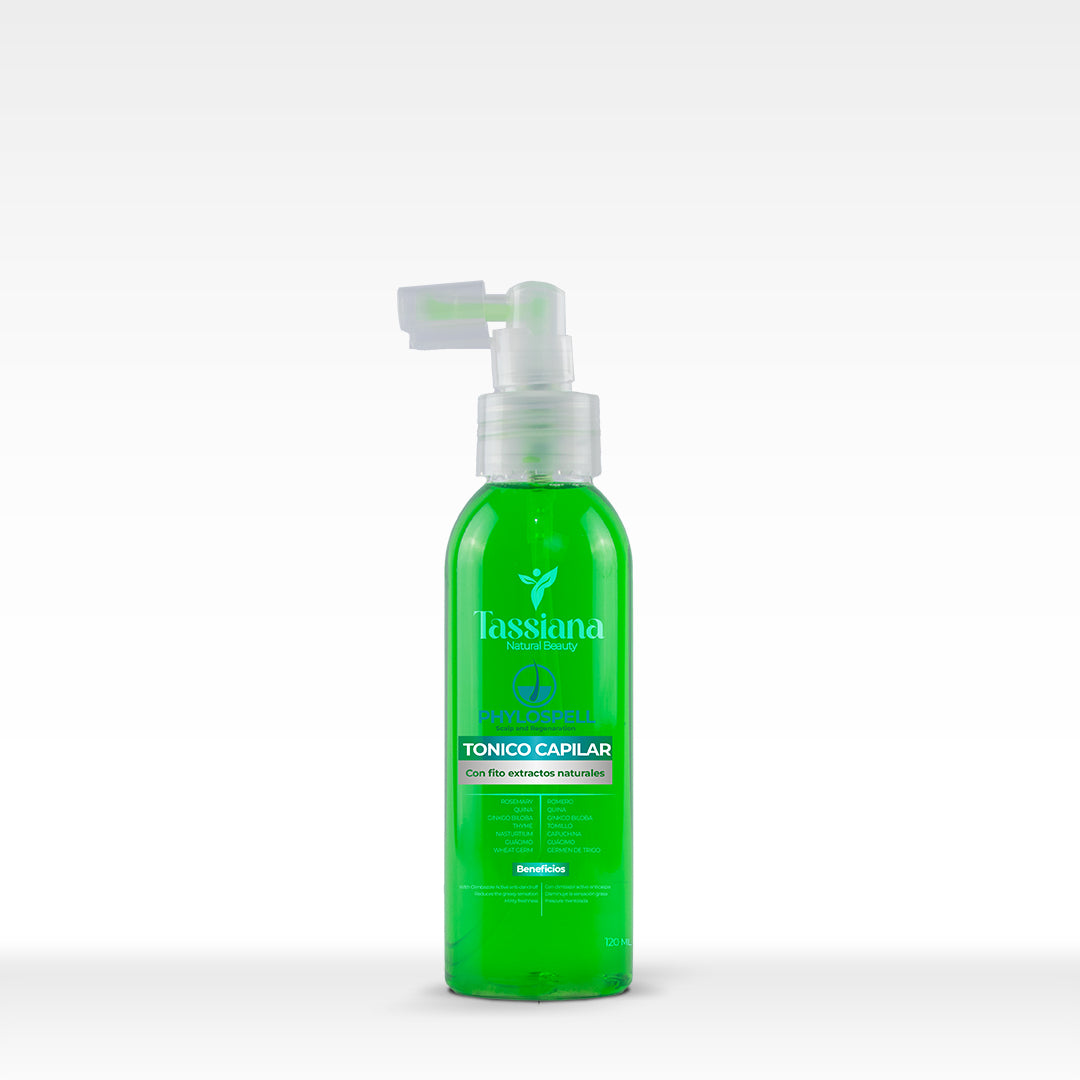 Con ayuda de la válvula dispensadora rociar una cantidad moderada de TÓNICO PHYLOSPELL directamente sobre el cuero cabelludo, realizar masajes circulares con la yema de los dedos. Para mayor efectividad aplicar en la noche y en el día, no afecta la pigmentación del cabello. No retirar.